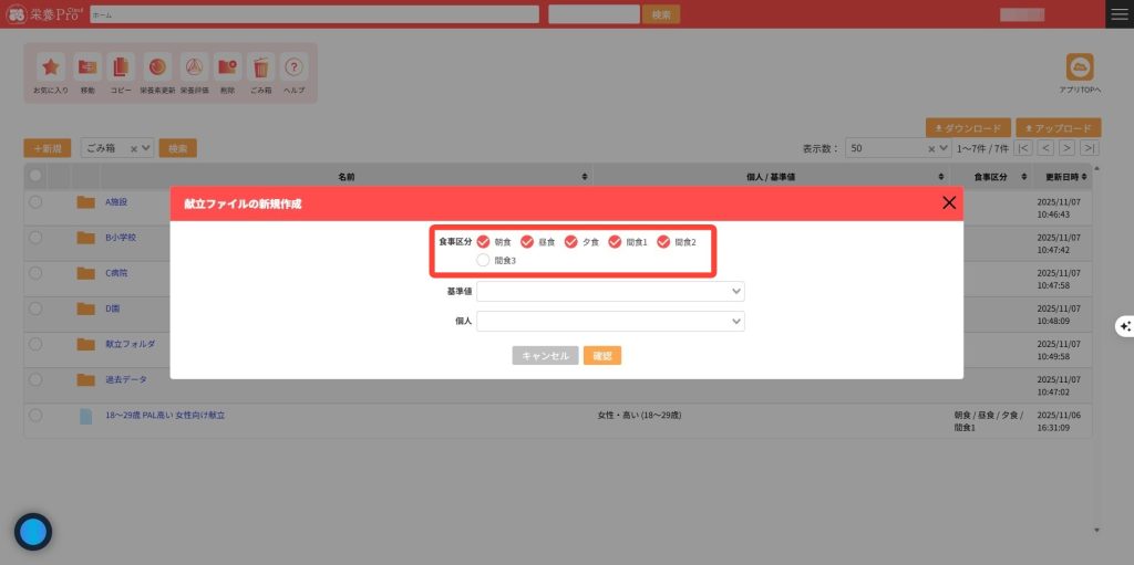 栄養Proクラウドのクラウドストレージに献立ファイルを作成できます。献立ファイルを作成することで栄養計算を行うことができます。