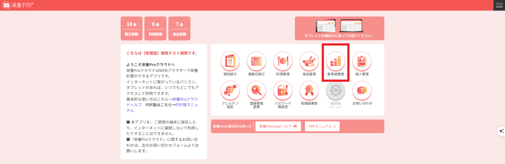 3.クリックすると栄養Proのホーム画面に戻ります。