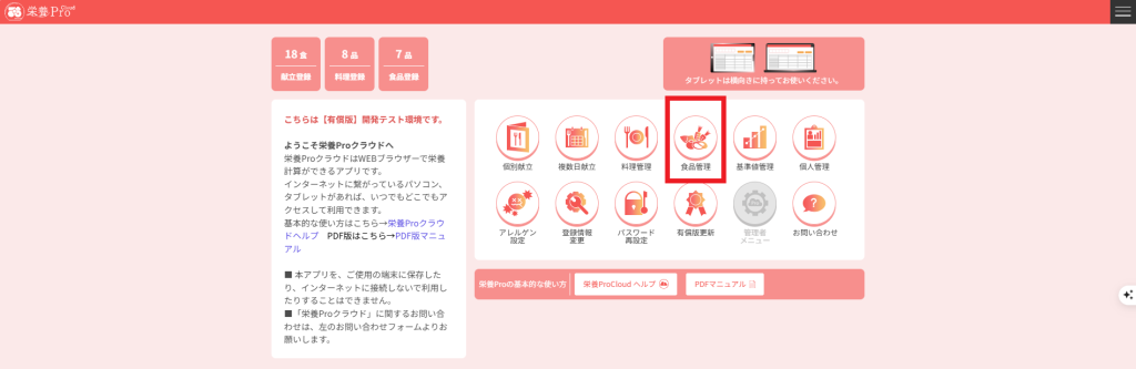 3.クリックしたら栄養Proクラウドのポータル画面に戻ります。