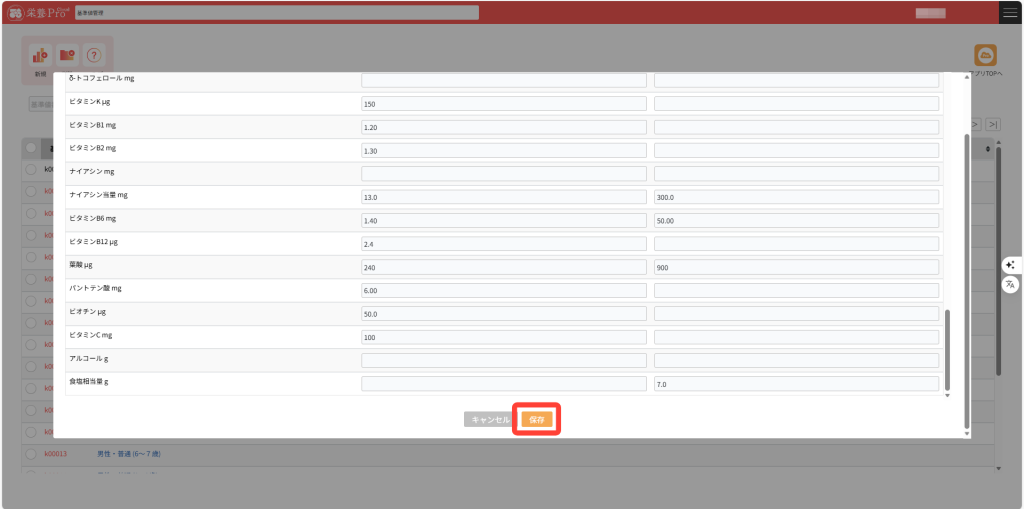 4.基準値の編集が完了したら、画面下の「保存」をクリックします。