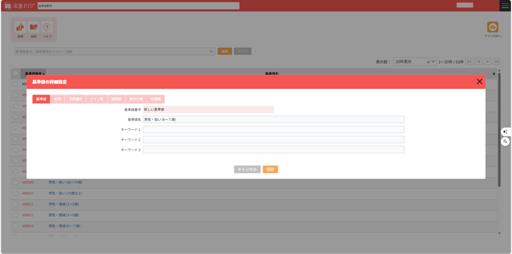 2.基準値編集画面が開き選択された基準値が表示されます。
